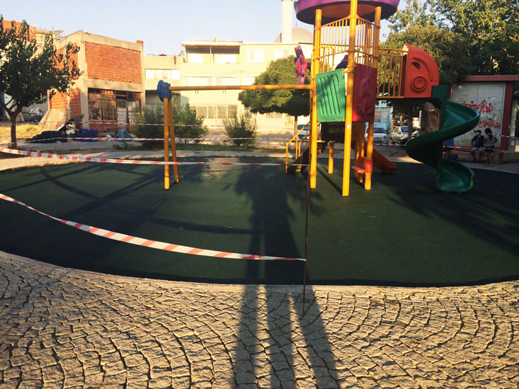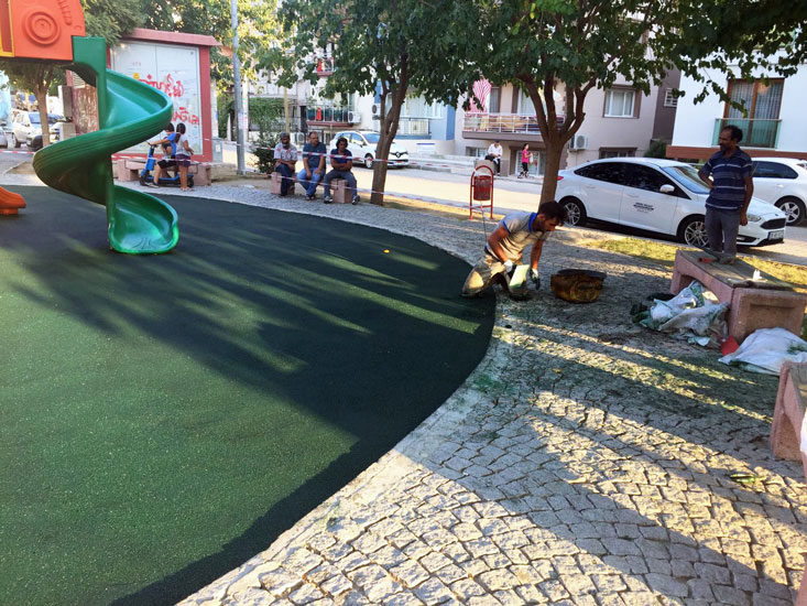 Boyalı sbr dediğimiz yerinde dökme ve kauçuk granüllerin demir
